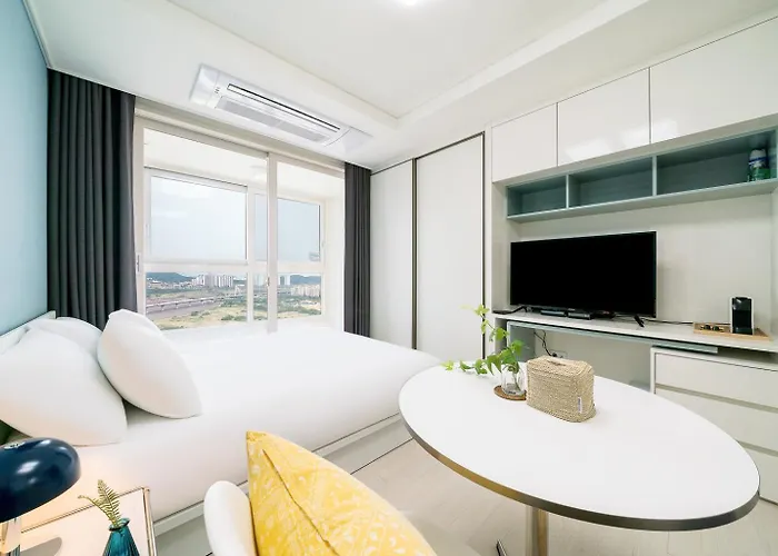 この宿泊施設には台所が備わります 最寄りの空港は仁川国際空港で、Urbanstay Songdo Moonlight Parkアパートから35キロメートルで、송도sk뷰バス停から徒歩で10分キロメートルです。 共用ラウンジでの滞在を楽しめます。